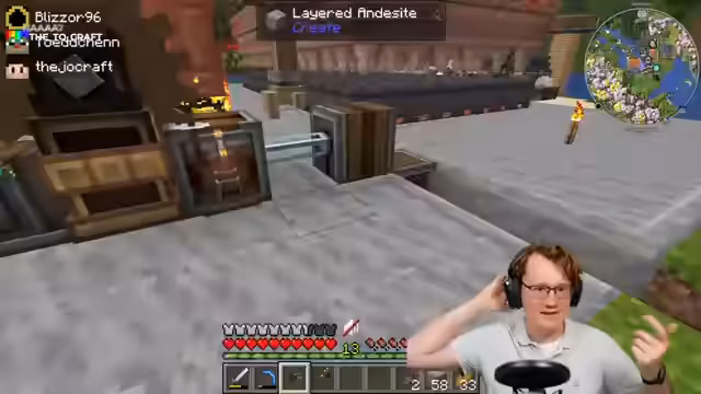 00:12:03Bei der Inspektion seiner Fabrik stellt der Streamer gravierende Probleme fest. Viele Chain Drives, Anvils und andere wichtige mechanische Komponenten sind verschwunden oder beschädigt. Es entsteht eine Diskussion mit den Teammitgliedern Logo und Töttchen über die Ursache. Töttchen bestreitet, etwas abgebaut zu haben, und es gibt Theorien, dass die Energieversorgung Probleme verursacht haben könnte, die zu diesen Ausfällen führten. Die unklaren Umstände verursachen Frustration und den Wunsch, die Infrastruktur zu schützen.