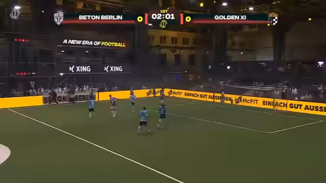 04:47:26Der Stream beginnt mit dem Spiel zwischen Beton Berlin und Golden Eleven. Christoph Kramer eröffnet für Beton Berlin das Tor, gefolgt von Ilyas Anand für Golden Eleven. Die erste Halbzeit endet 1-1. Beide Teams zeigen beeindruckende Leistungen mit starken Zweikämpfen und technischen Fähigkeiten. Kramer und Anand stehen im Mittelpunkt des Duells zwischen den beiden Teams.