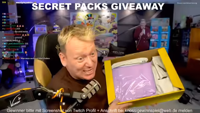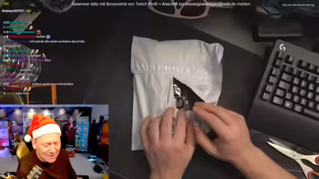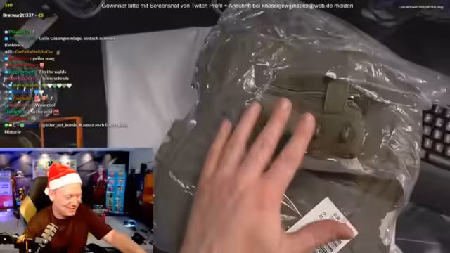 02:08:17Der Streamer beginnt mit der Verlosung weiterer „Secret Packs“. Der erste Gewinner erhält ein Paket mit verschiedenen Gegenständen, darunter ein Gamepad und Schuhputzmittel aus China. Die Verlosung geht weiter, und die Preise werden immer skurriler. Ein Gewinner erhält holländische Papiertüten, was zu humorvollen Kommentaren über deren Nutzen führt. Der Streamer spekuliert über die wertvollsten Gegenstände, die bisher in den Secret Packs waren, wie Fußballtrikots oder Drohnen. Er erwähnt, dass sich bisher niemand gemeldet hat, der die Pakete erhalten hat, um sich zu bedanken.