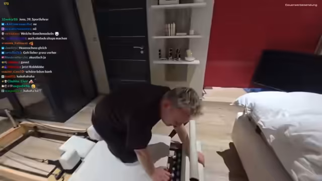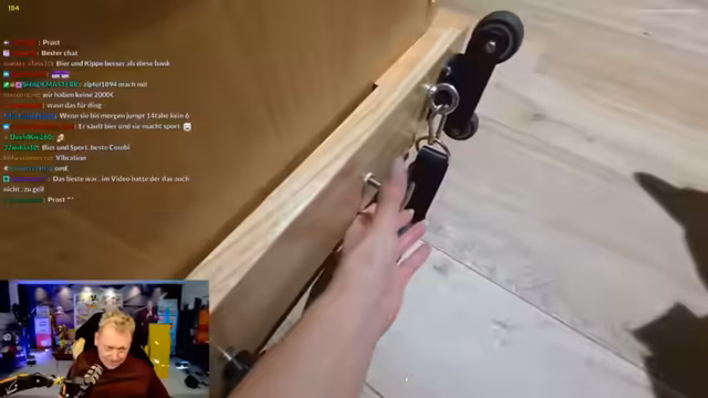 01:21:46Während der Demonstration einer „Jumping-Variante“ der Übung stellt sich heraus, dass das Fitness-Gerät instabil ist und ein Brett wackelt. Eine Schraube löst sich, was zu Besorgnis führt, dass das Gerät kaputtgehen könnte. Der Streamer und sein Gegenüber versuchen, das Problem zu beheben, indem sie die Schraube wieder festziehen. Es wird festgestellt, dass dem Gerät möglicherweise eine Anleitung fehlt und dass die Befestigung des Brettes ungewöhnlich erscheint. Der Chat hilft bei der Lösung des Problems, indem er darauf hinweist, dass das Brett an den Seiten gedrückt werden muss, um es zu stabilisieren. Nach der erfolgreichen Reparatur ist das Gerät wieder einsatzbereit und die „Jumping-Übung“ kann fortgesetzt werden.
