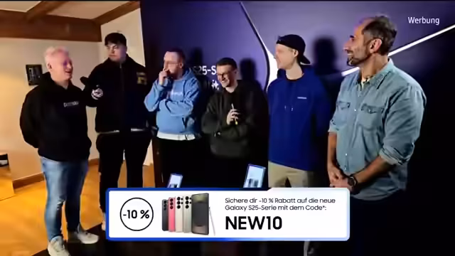 01:53:04Nachdem Mike den Kletterparcours erfolgreich absolviert hat, wird der Gewinner seines Gewinnspiels bekannt gegeben: Solo-Türk, der ein Galaxy Z Fold 6 erhält. Es wird erklärt, wie der Gewinner seinen Preis erhalten kann. Anschließend wird Heiko bei seiner Ankunft gefeiert und es wird auf ein weiteres Gewinnspiel unter samsunglive.de hingewiesen. Es folgt die Ankündigung, dass Käufer eines Galaxy S25 sechs Monate lang die Google Gemini Advanced Lösung kostenlos erhalten, was einer Ersparnis von über 120 Euro entspricht. Es wird betont, dass Mike und Adam ebenfalls anwesend sind und Adam parallel einen Stream macht. Zudem wird versucht, Schuhgröße 48 für eine Eis-Challenge zu organisieren. Es wird die Idee eines Curling-ähnlichen Spiels auf Kunsteis diskutiert, bei dem die Teilnehmer ein Objekt so nah wie möglich an eine Linie schieben müssen.