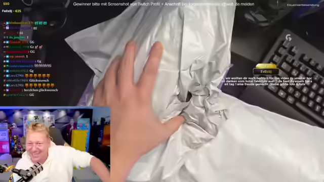 05:37:27Der Streamer veranstaltet ein Secret Pack Giveaway, bei dem er Mystery-Tüten mit verschiedenen Rückläufer-Artikeln verlost. Er erklärt die Teilnahmebedingungen und zieht einen Gewinner, Dennis-X. Die Pakete enthalten kuriose Gegenstände wie Schlafmasken, adaptives Besteck, eine Spielfigur und eine Facial-Maschine. Dennis-X erhält zudem ein Autogramm auf einem Trikot. Nach der Verlosung kündigt der Streamer einen Koch-Stream für den übernächsten Tag an. Zum Abschluss des Streams wird ein kleiner, unbekannter Streamer geraidet, um ihm zu helfen, Zuschauer zu gewinnen. Der Stream endet mit einem Aufruf an die Community, den Raid zu unterstützen und sich auf den nächsten Stream zu freuen.