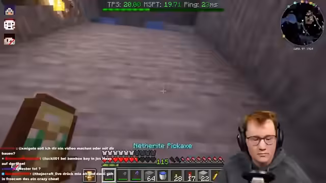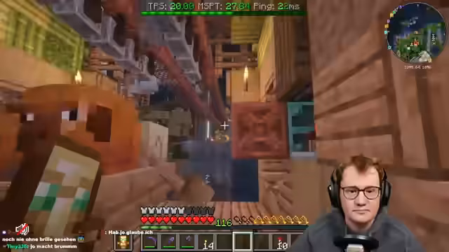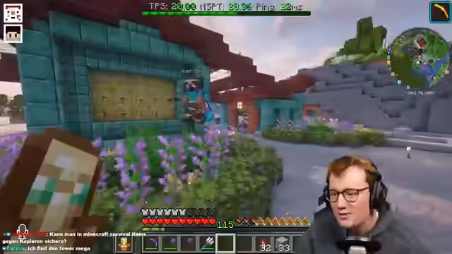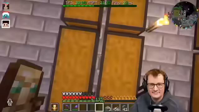 02:33:37Der Stream konzentriert sich auf den Bau einer automatisierten Tür mit einem Creeper-Prank. Dazu wird eine komplexe Redstone-Technik mit einem Armor-Stand und Wasserströmen entwickelt, der durch Gänge fließt und den Spieler transportiert. Gleichzeitig wird der Bedarf an Kupfergolems und Schelfblöcken für den Bau des Ganges thematisiert, da diese Blöcke das Verwenden von Türen überflüssig machen würden. Es gibt zudem Bedenken wegen der Minecraft-Version 1.21 und der Performance.