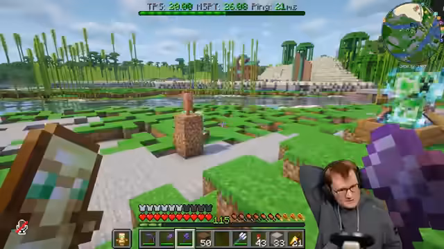 02:00:05Für eine geplante Wassershow im Freizeitpark werden spezielle Geräusche benötigt. Diese stammen von den Köpfen normaler und geladener Creeper, die auf Notenblöcken platziert werden können. Nachdem ein kurzes Gewitter die Chance auf Charged Creeper verpasst wird, wird mit einem Trident-Item versucht, normale Creeper zu 'laden'. Schließlich gelingt es mit Hilfe des Zuschauers Norex, die benötigten Creeper-Köpfe durch gezieltes Töten zu beschaffen.