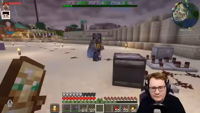00:04:37Der Stream beginnt mit der Begrüßung der Community. Nach dem Login in die Welt stellt der Streamer fest, dass nach einem Server-Neustart alle Chunkloader weiterhin funktionieren, was als positives Zeichen gewertet wird. Kurz darauf treten jedoch Probleme mit der Kamera auf, die sich aufgrund eines angeblich inkompatiblen Batteriemoduls abschaltet. Nach manuellem Eingreifen und Neustart ist die Kamera wieder betriebsbereit. Anschließend werden die Funktionsfähigkeit der einzelnen Chunkloader überprüft, was erfolgreich verläuft.