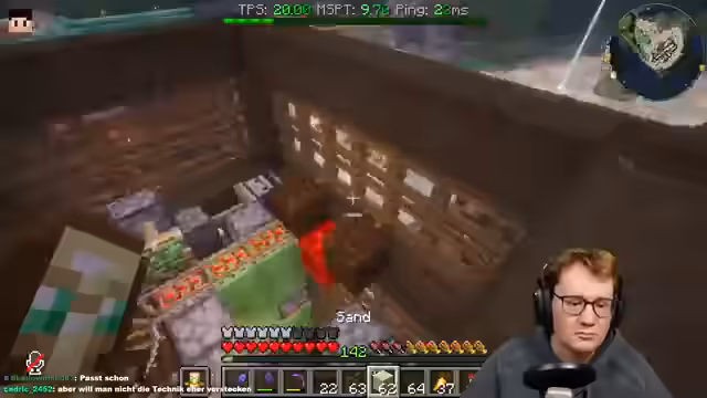 06:55:12Der Streamer besucht Rotpilz' Base und bewundert detailliert das Design, das reale Architektur inspiriert. Rotpilz erklärt die Blockpalette und die Herausforderungen beim Bau, wie die Beseitigung von Schneebiomen. Die Base umfasst eine Wohnresidenz mit aufwendigen Innenräumen, darunter ein Wohnzimmer mit personalisiertem Kunstwerk und eine Küche mit Chiseled-Block-Details. Zukünftige Erweiterungen wie eine Festhalle werden angedeutet.