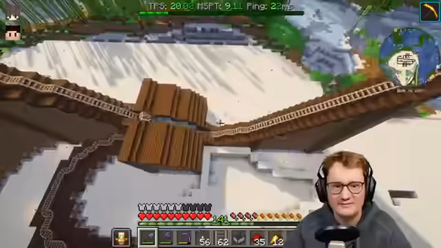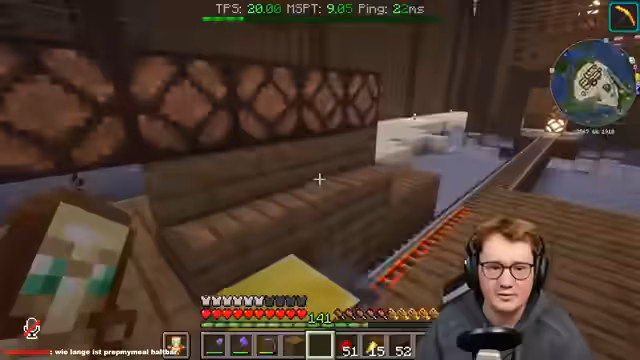 03:05:21Die Holzachterbahn ist nun technisch komplett fertiggestellt und wird live gefahren. Sie nutzt Minecraft-spezifische Physikelemente wie Schiffsschaukeln und überraschende Türöffnungen. Mehrere Spieler können gleichzeitig fahren, der Ausstieg erfolgt über einen speziell gestalteten Bereich. Zukünftig sollen Fotosessions als Feature hinzukommen.