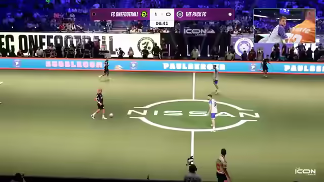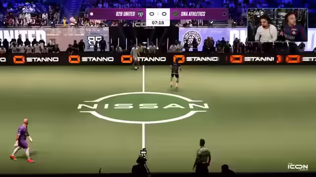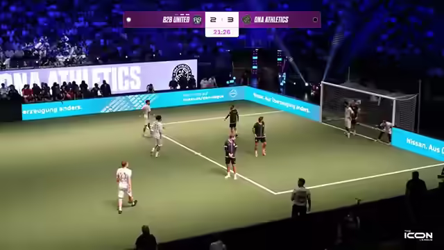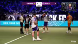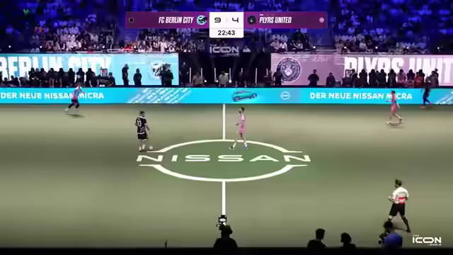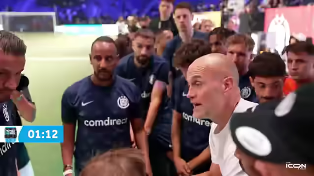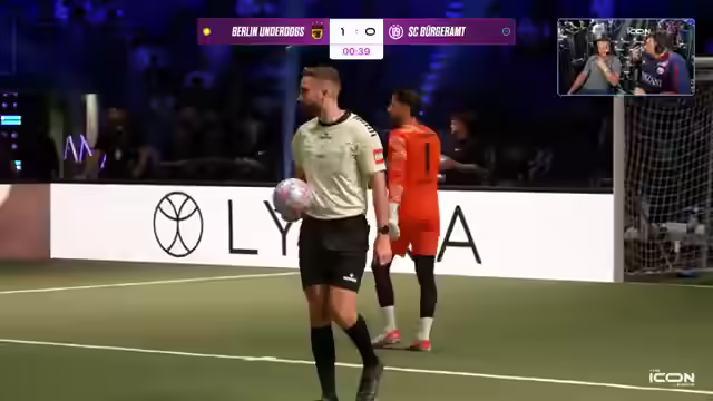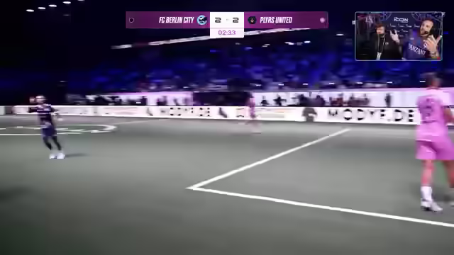 01:34:24Es wird über den Gesundheitszustand von Jam Zuneck gesprochen, der ohne Kreuzband spielt und umgeknickt ist. Berlin City führt mit 3:2. Gerrit Golombäck ist im ungewohnten Trikot von Berlin City zu sehen, nachdem er kurzfristig als Trainer verpflichtet wurde. Sven Körner, der Erfolgscoach der vergangenen Saison, ist ebenfalls anwesend. Claudio Pizarro äußert sich zum Spielstand von 4:2 und fordert weniger Fehler und mehr Überzeugung beim Torschuss. Eine gelbe Karte führt zu einer Überzahl für die Gegner. Berlin City setzt erneut den Rule Breaker Triple Threat ein. Es wird auf einen grafischen Fehler bei der Zeitanzeige hingewiesen. Berlin City hat bereits zwei Aluminium-Treffer erzielt. Die Players haben einige Spieler aus dem Futsal-Bereich geholt. Memo Söser wird als möglicher MVP gehandelt.