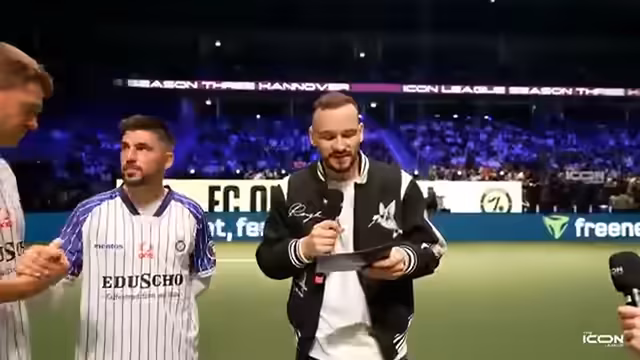 00:11:14Der Stream beginnt mit dem Auftakt der IconLeaks Season 3 in der Z.A.G. Arena in Hannover. Es wird der erste Stopp der großen Icon League Tour erwähnt, bei der man sich auf neue Tore, Rule Breaker und eine bessere Organisation freut. Auch eine intensive letzte Saison mit portugiesischen Legenden und einem Finale in Berlin wird kurz angerufen. Der Streamer begrüßt das Publikum und kündigt an, dass es in dieser Saison einige Neuerungen geben wird, einschließlich eines neuen Partners und neuer Regeln.