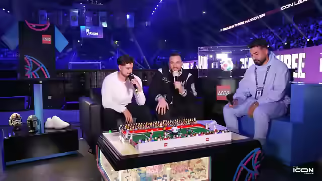 00:11:14Die Icon League startet in die dritte Saison in der Z.A.G. Arena in Hannover. Es gibt eine Deutschland-Tour, nächste Woche in Hamburg. Max Schradin hatte einen privaten Schicksalsschlag und Toni wird in den nächsten Wochen wieder dabei sein. Season 3 bringt einige Neuerungen mit sich, darunter eine Partnerschaft mit LEGO, die die Moderations-Area gestaltet haben. Es wird ein Gewinnspiel auf Instagram geben, bei dem die Anzahl der verbauten LEGO-Steine geschätzt werden soll. Die Anzahl der Steine ist höher als 15.000. Es gibt auch neue Regeln und Rule Breaker, die in einem Video erklärt werden. Toni war maßgeblich an den neuen Regeln beteiligt, um mehr Feuer ins Spiel zu bringen und den Einfluss der Torhüter zu reduzieren. Die Ratings der Spieler wurden angepasst, und es wird wieder Play-Ins geben, um die Regular Season spannender zu gestalten. Neu ist das Team Find the Pro Icons, das von Dia und Maduka Okoye vorgestellt wird und immer wieder neue Leute ins Team bringt. Dia hat kurzfristig geholfen, ein Team zusammenzustellen.