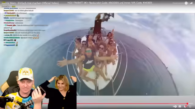 04:44:46Der Streamer und seine Frau schauen sich das Musikvideo "Einfach mal machen" von Money Mark live im Stream an und bewerten es. Anschließend telefonieren sie mit Money Mark, um ihre Bewertung mitzuteilen und über ein gemeinsames Songprojekt zu sprechen. Es wird überlegt, einen neuen Song im Ballermann-Stil zu produzieren und Ideen für den Text werden ausgetauscht. Der Titel "Sand im Getriebe" wird als möglicher Titel für den neuen Song ins Spiel gebracht. Es wird auch ein weiteres gemeinsames Projekt, ein Song mit dem Titel "Urlaub", erwähnt, der bereits in der Vergangenheit gepostet wurde.