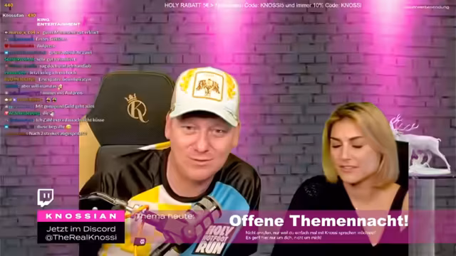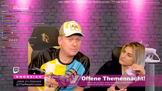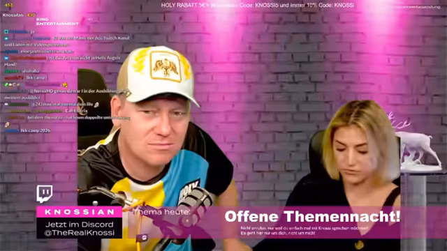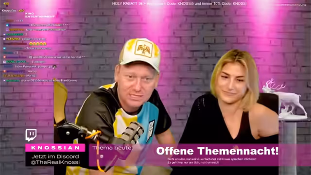 02:26:28Knossi und seine Frau diskutierten über den Spruch "Immer da, wo Hype ist" und nahmen ihn mit Humor. Sie spekulierten, wer der Freund von Phoebe sein könnte und scherzten, dass Stefan Raab im Kostüm mitgedreht habe. Knossi betonte seine Unterstützung für Phoebe und lobte ihre Mutter Evelyn. Er erzählte eine Anekdote über eine Wette, bei der jemand 1000 Subs verlor und eine Kippe wegschmiss. Knossi war beeindruckt von der Zuneigung der Frauen zu Rezo und verglich sie mit der Liebe, die seine eigenen Fans ihm entgegenbringen. Er erzählte von skurrilen Begegnungen mit aufdringlichen Fans, insbesondere von einer älteren Dame, die sich ohne Vorwarnung auf seinen Schoß setzte. Knossi bemerkte, dass er selbst nicht so offensiv angebaggert werde wie Rezo. Er erinnerte sich an eine Situation auf der Aida, wo eine Frau an seine Eier griff, und betonte, dass er immer zuerst seine Frau ansieht, wenn solche Situationen passieren. Er scherzte darüber, dass er manchmal Angst hat, Ärger zu bekommen, wenn Fans sich danebenbenehmen.