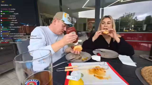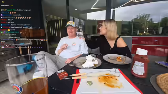 00:37:16Es wird spontan beschlossen, gemeinsam etwas zu kochen, obwohl es nicht geplant war. Es wird ein Blick in den Kühlschrank geworfen, um zu sehen, welche Zutaten vorhanden sind. Als erste Zutat wird eine Tomate genannt, gefolgt von Krakauer Grillbratwurst. Der Streamer plant, einen Grill anzumachen und Wintergrillen zu veranstalten. Seine Frau backt Brötchen auf. Es wird über den Muskelkater der Frau gesprochen, der ihr große Probleme bereitet. Der Streamer holt eine Rettungsinsel, die er bei einem Dreh geschenkt bekommen hat. Er richtet eine Grillperspektive ein und fragt den Chat um Rat, wie er die Kamera am besten positionieren kann. Es werden weitere Zutaten wie Paprika und Pfefferoni für den Grill vorbereitet. Der Streamer zeigt seinen Grill-Trick und präsentiert ein Einschweißgerät, um Lebensmittel länger frisch zu halten. Er demonstriert die Funktionsweise und vakuumiert Würste ein.