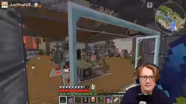 01:50:15Der Stream konzentriert sich auf den Bau eines automatisierten Sortiersystems mit Förderbändern und Filtern, um abgebaute Ressourcen zu trennen und zu lagern. Parallel dazu wird die Konstruktion einer speziellen Farm in Angriff genommen, die mit sogenannten Drink-Me-Magiern Mobs einfängt, um deren Drops wie Fleisch automatisch zu ernten. Dabei werden Schweine und Hühner in magische Gefäße gesperrt, und die Magier saugen deren Drops auf ein zentrales Förderband.
