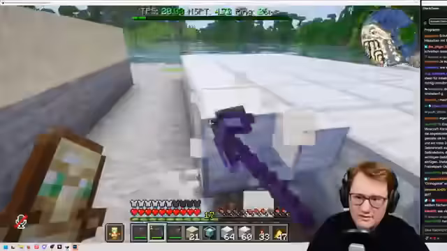 02:29:03Die Arbeit verlagert sich von der Grafikerstellung in das Minecraft-Spiel. Der Streamer benötigt Itemframes zur Anzeige der Karte. Da diese nicht direkt handelbar sind, müssen sie durch Villager-Trades erworben werden. Gleichzeitig wird das Einfangen eines Skelettpferds als Reittier für die Attraktion geplant, welches sich als schwierig erweist und die Verwendung eines Name-Tags erfordert.