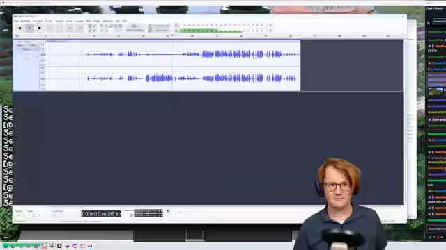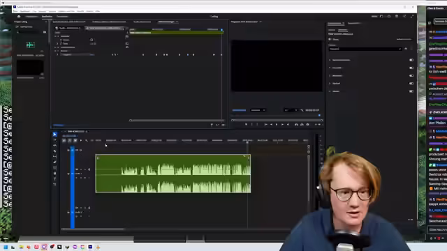 03:12:18Es wird nach Erfahrungen mit Holzkern-Uhren gefragt. Zuschauer teilen ihre positiven Erfahrungen mit den Uhren und der Qualität. Es wird festgestellt, dass Holzkern eine gute Mischung aus Qualität und Preis bietet. Der Streamer beginnt mit der Bearbeitung der von Logo zugeschickten Sprachspuren für den Film. Die Rohaufnahme wird in ein Schnittprogramm geladen und die benötigten Teile werden herausgeschnitten. Es wird eine Aufnahme als Zeitachse verwendet, um die Synchronisation zu erleichtern. Die Synchronisation der Audiospur mit dem Video wird erklärt. Es wird erklärt, wie die Musik später hinzugefügt wird. Der erste Teil des Films wird modelliert und mit der Audiospur synchronisiert, um einen ersten Eindruck zu bekommen. Der Streamer experimentiert mit verschiedenen Takes und Effekten, um den bestmöglichen Film zu erstellen.
