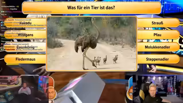 04:22:00Ein Tier-Quiz auf Basis eines Nintendo Switch-Spiels beginnt. Die ersten Fragen sind eine Kragenechse und ein Alpaka, die vom Streamer und seinem Mitspieler erraten werden. Danach geht es um eine Taube, die als Straßentaube identifiziert wird. Das Spiel wird als interessant und unterhaltsam beschrieben, besonders für Tierliebhaber, und führt zu aufschlussreichen Ergebnissen.