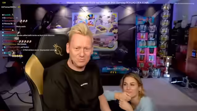 00:06:05Der Stream beginnt mit der Ankündigung eines besonderen Events. Es wird gemeinsam mit Jens auf dessen Twitch-Kanal gestreamt. Hauptthema ist die bevorstehende Teilnahme bei der Show 'Schlag den Star' am Samstag. Sie treten gegen Max Kruse und seine Frau an, können aber bereits über einen Auftritt bei der Werbung für die Show berichten. Der Ton des Streams muss zunächst angepasst werden, um eine akustische Qualität für die Zuschauer zu gewährleisten.