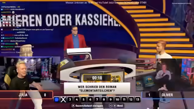 00:09:40Die Vorbereitung auf die Show steht im Fokus. Es herrscht Nervosität, insbesondere bei den Wissens- und Quizspielen. Man beschäftigt sich mit der Struktur der Show und trainiert mit den offiziellen 'Schlag den Star'-Spielen auf der Nintendo Switch. Es gibt die Strategie, dass bei den Quizfragen erst die Lösung genannt und dann gebuzzert wird, um Punkte zu sichern. Die Treppe im Studio ist eine zusätzliche Quelle der Angst, da Sturzgefahr besteht.