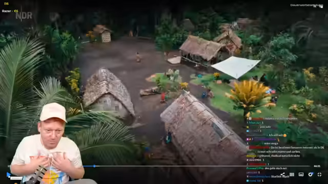 02:41:23Im Rahmen der Hochzeitsvorbereitungen findet das traditionelle Schlachten eines Wildschweins statt, das im Dschungel frei herumlief. Der Streamer wird gebeten, das Tier zu töten, lehnt dies aber aus Gewissensgründe ab, was beim Häuptling auf Enttäuschung stößt. In dieser Kultur werden alle Teile des Tieres verwertet, wobei sich die Kinder besonders über den aus der Schweinsblase hergestellten Luftballon freuen. Am Abend findet eine Kava-Zeremonie statt, ein rituelles Getränk, das in der Dorfgemeinschaft von großer Bedeutung ist und das Zusammengehörigkeitsgefestigt.