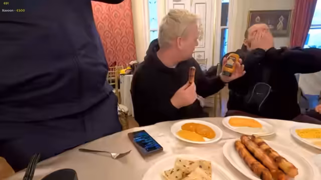 01:04:50Zu Beginn des Streams begrüßt er den Streamer Ali und spricht über die Anreise mit einem Fahrer namens Ahmed. Der Fokus liegt auf der Präsentation verschiedener Wurstsorten und Soßen, die getestet werden sollen. Ali erwähnt, dass die türkische Wurst Sucuk aufgebraucht ist, und probiert stattdessen verschiedene Soßen, darunter eine scharfe Chilisoße. Es werden auch Produkte wie türkische Nutella und Soft Drinks wie Ulu Dağ Gazoz vorgestellt und kurz kommentiert.