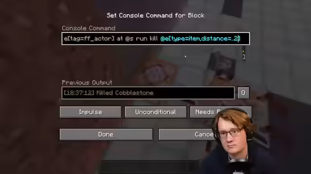 00:10:16Ein Problem mit Partikeln, insbesondere 'Area Effect Clouds', die während der Fahrt von Attraktionen erzeugt werden, stört das Gameplay. Der Streamer identifiziert, dass die Partikel instant gespawnt werden und beschließt, das Problem zu beheben. Er testet verschiedene Befehle, um die Spawn-Radius und Dauer zu kontrollieren und findet schließlich eine mögliche Lösung, indem er den Radius auf 0 setzt, um den Fehler zu umgehen.