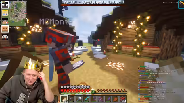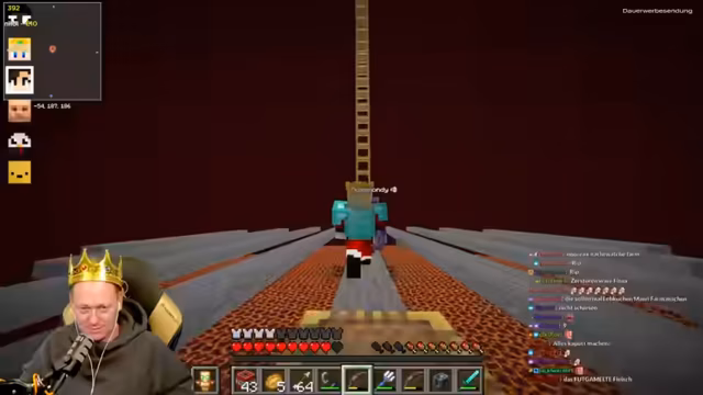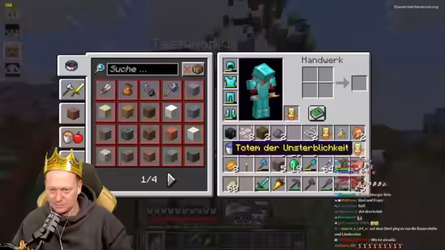 06:25:08Der Streamer fokussiert sich auf die Beschaffung von Ausrüstung, insbesondere von Diamanten für Fallen und Spezialgegenstände. Es kommt zu Konflikten mit Jens, dem vorgeworfen wird, einen Hammer und eine Endertruhe (falsch als 'Netherland-Kiste' bezeichnet) nicht zurückgegeben zu haben. Der Streamer betont, er habe nur überlebenswichtige Items gesammelt, während Jens ihn beschuldigt, Gegenstände zu klauen. Diese Debatte eskaliert in Vorwürfen über Taschendiebstähle und die Verweigerung der Rückgabe von Totten und Rüstungsteilen.