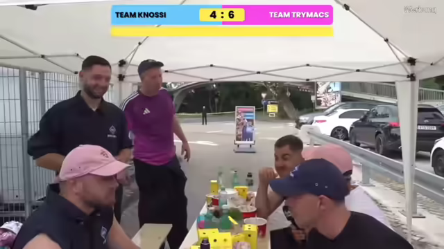 01:30:12Es folgt ein Einkaufswettbewerb, bei dem die Teams einen vorgegebenen Betrag auf den Cent genau erreichen müssen, ohne denselben Artikel mehrfach zu kaufen. Die Beträge sind 20,23 Euro, 31,60 Euro und 27,85 Euro. Es stellt sich als schwierig heraus, den genauen Betrag zu erreichen, und es kommt zu Diskussionen über die Einhaltung der Regeln. Ein Team hat Schwierigkeiten, die Spielregeln zu verstehen, was zu zusätzlichen Problemen führt. Es wird festgestellt, dass die meisten Preise in der Tankstelle auf 9 Cent enden, was die Aufgabe zusätzlich erschwert. Ein Team macht es sich einfach, indem es einen fast passenden Artikel und einen Babybel kauft. Es kommt zu Diskussionen über die Gültigkeit des Einkaufs, insbesondere bei der Wahl eines Wodkas. Am Ende gewinnt ein Team, das nur wenige Cent daneben lag. Danach steht ein Bobbycar-Rennen an, bei dem jeweils eine Person fährt und die anderen schieben. Es stellt sich heraus, dass das Rennen anstrengender ist als erwartet, insbesondere für die schiebenden Teammitglieder. Es kommt zu Taktikbesprechungen und Überlegungen, wie man die Strecke am besten bewältigt. Ein Teammitglied hat Probleme mit der Achse des Bobbycars, was zu Schwierigkeiten führt. Am Ende gewinnt Team Clash Royale das Bobbycar-Rennen, nachdem ein anderes Team durch einen Fehler ausscheidet. Es kommt zu Diskussionen über die Ideallinie und die Schwierigkeiten, das Bobbycar zu steuern.