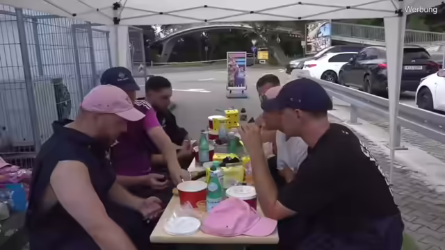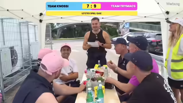 02:48:52Es wird humorvoll über den Diebstahl von Süßigkeiten aus den Snackboxen der anderen Teilnehmer gesprochen. Dabei gesteht ein Teilnehmer, die Süßigkeiten nicht in seinen eigenen Kofferraum, sondern in seinen Rucksack gepackt zu haben, um sie später im Zimmer zu essen. Ein anderer Teilnehmer äußert Bedenken, dass Jens im Team nach Essen, Trinken und Rauchen an Ehrgeiz verliert und in Urlaubsmodus verfällt. Es wird die Notwendigkeit betont, Jens für das nächste Spiel zu motivieren. Es folgt ein Dialog zwischen den Teilnehmern, in dem Jens seine Motivation beteuert und ein anderer ihm vorwirft, den Chat offen gehabt zu haben, was er jedoch bestreitet. Die bevorstehende Aufgabe wird als Reifen, Rollen, Kegel, Pizzakartons und Pyramide umrollen beschrieben, was zu einem Vergleich mit dem Spiel Werwolf führt, bei dem es um Beschuldigungen und Dementis geht. Es wird überlegt, ob ein Tankwart-Outfit mit Aral-Mütze für Karneval ausreicht, wobei die Meinungen über den Aufwand für ein Kostüm auseinandergehen. Abschließend wird das nächste Spiel mit Pizzakartons und Reifen angekündigt, bei dem es darum geht, Türme umzukegeln, wobei kleinere Türme mehr Punkte bringen, aber schwieriger zu treffen sind. Das Team wird zusammengerufen und die Regeln werden erklärt, während einige Teilnehmer Schwierigkeiten haben, zuzuhören.