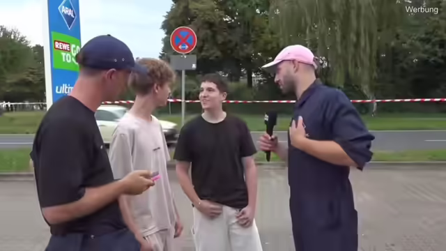 04:00:19Es geht weiter mit dem Quiz. Gefragt wird, wie viele Kontinente es gibt. Team Knossi antwortet mit fünf, wird aber korrigiert: es sind sieben. Team Trimax liegt nun mit 11 zu 7 in Führung. Die nächste Frage ist eine Buchstabierfrage: Buchstabiere 'Business'. Team Trimax buchstabiert korrekt und baut den Vorsprung aus. Es folgt eine Schätzfrage: Wie viele Heißgetränke werden im Jahr an Aral-Tankstellen verkauft? Team Knossi tippt auf 80 Millionen, Team Trimax auf 81 Millionen. Die korrekte Antwort ist 31 Millionen, womit Team Knossi näher dran ist. Es folgt die Frage nach einem Nachbarland von Deutschland, welche von Team Trimax beantwortet wird. Der Punktestand beträgt 13 zu 8. Es wird gefragt, wie viele Megabytes in einem Gigabyte sind. Team Trimax antwortet korrekt mit Tausend. Der Punktestand beträgt 13 zu 9. Die Frage, in welchen Städten die zweite Bustour stattfand, kann Team Knossi nicht beantworten. Der Punktestand beträgt 14 zu 9. Die letzte Frage ist eine Buchstabierfrage: Buchstabiere 'Portemonnaie'. Team Trimax buchstabiert korrekt und gewinnt damit uneinholbar die Tankstellen-Olympiade. Es folgt eine Analyse der Frustseite von Team Knossi, wobei Max Schradin als Schwachstelle ausgemacht wird. Es wird aber auch anerkannt, dass er bei den Chatfragen gut abgeschnitten hätte.