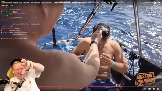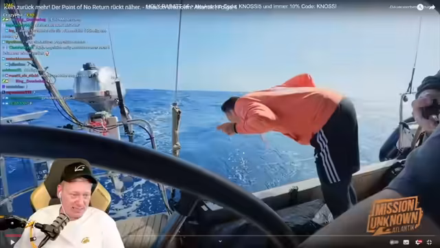 04:56:10Es kommt zu einem unangenehmen Vorfall an Bord, als ein Fisch ins Boot fliegt und landet. Mark, der den Fisch noch nie zuvor gesehen hat, reagiert mit Panik, was bei den anderen Beteiligten für Heiterkeit sorgt. Nachdem der Fisch lebendig wieder aus dem Boot entfernt wurde, reflektiert der Streamer über die ungewohnten Reaktionen und stellt die Fähigkeit von Menschen infrage, mit ungewöhnlichen Situationen umzugehen, wenn diese nicht zum alltäglichen Erfahrungsschatz gehören.