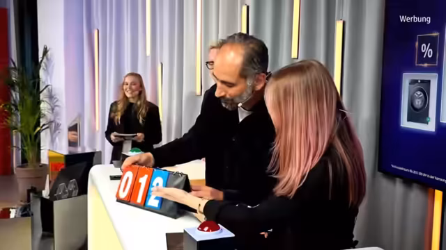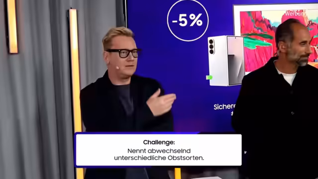 00:27:52Lynn stellt das zweite Spiel vor: "Kategorienkette". Die Teilnehmer müssen abwechselnd passende Begriffe zu einer vorgegebenen Kategorie nennen, wobei nur deutsche Begriffe und keine Markennamen erlaubt sind. Pro gewonnener Kategorie gibt es einen Punkt. Die erste Kategorie ist "Produkte, die Samsung herstellt". Jens beginnt mit "Handys", gefolgt von Phoebe mit "Tablets" und Jens mit "Fernsehern". Die Runde geht weiter mit "Kühlschränken", "Audiogeräten", "Wäschetrocknern", "Projektoren", "Smartwatches", "Smartringen", "Notebooks/Laptops" und "Staubsaugern". Phoebe gewinnt diese Runde, da Jens keine weiteren Produkte nennen kann. Die nächste Kategorie sind "Obstsorten". Jens beginnt mit "Apfel", gefolgt von Phoebe mit "Orange" und Jens mit "Banane". Die Runde wird immer schwieriger, da viele exotische Früchte genannt werden. Phoebe zeigt sich hier als Expertin und gewinnt auch diese Kategorie, wodurch der Punktestand ausgeglichen wird. Die letzte Kategorie sind "deutsche Städte mit K". Jens beginnt mit "Kaiserslautern", gefolgt von Phoebe mit "Köln" und Jens mit "Konstanz". Phoebe gewinnt diese Runde mit "Kassel", da Jens keine weiteren Städte nennen kann. Der Endstand ist 3 zu 0 für Phoebe.