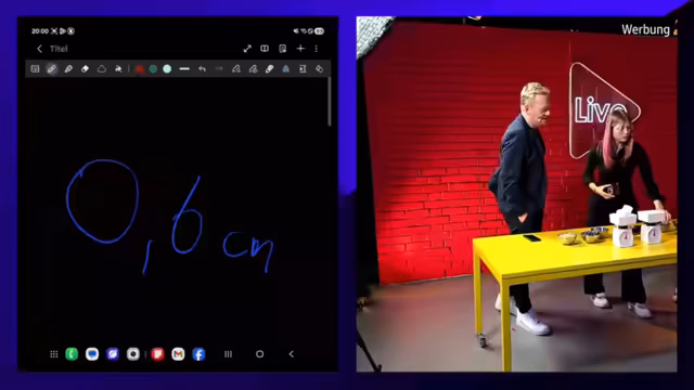 01:48:03Die nächste Challenge ist das Schätzen von Entfernungen. Die Teilnehmer müssen die Luftlinie vom Samsung Deutschland Office in Eschborn zum Samsung Office in Suwon, Südkorea, in Kilometern schätzen. Jens schätzt 7900 km und Phoebe 7000 km. Die tatsächliche Entfernung beträgt 8586,61 km, wodurch Jens näher dran ist und den Punkt gewinnt. Anschließend folgt eine Zeitstopp-Challenge, bei der die Teilnehmer 45 Sekunden schätzen müssen, ohne eine Uhr zu sehen. Während dieser Challenge werden erneut die Black Week Deal Codes beworben. Die nächste Aufgabe ist es, die Anzahl der Smartphone-Modelle im Samsung Online-Shop ohne Farb- und Speicheroptionen zu schätzen. Phoebe schätzt 17 und Jens 18. Die tatsächliche Anzahl wird nicht direkt genannt, aber es wird auf die Vielfalt der Modelle hingewiesen, einschließlich der A-Serie. Es wird ein Angebot für das A56 für 299 Euro im TikTok-Shop und auf der Webseite erwähnt. Die nächste Aufgabe ist das Schätzen der Maße. Die Teilnehmer müssen die Dicke der Creator Cam (Galaxy Z Flip) schätzen. Beide schätzen 0,6 cm bzw. 0,7 cm, wobei die tatsächliche Dicke 0,65 cm beträgt, was zu einem weiteren Unentschieden führt. Das letzte Spiel dieser Runde ist das Schätzen der Anzahl der Lämpchen an einer Lichterkette. Beide schätzen 100, aber die tatsächliche Anzahl beträgt 340, was zu keinem Punkt für beide führt. Als zusätzliches Spiel müssen die Teilnehmer das Gewicht einer Melone schätzen. Phoebe schätzt 650 Gramm und Jens 800 Gramm. Die tatsächliche Gewicht beträgt 790 Gramm, und ein Zuschauer im Chat von Phoebe schätzt exakt 800 Gramm und gewinnt somit einen Preis. Der Punktestand ist ausgeglichen.