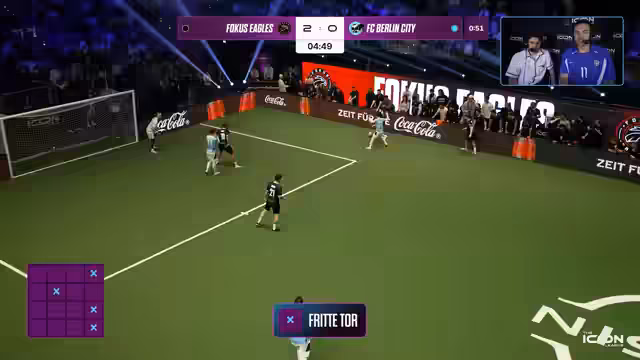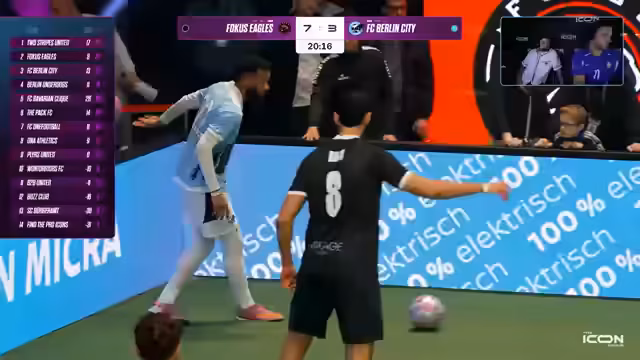 02:00:32Die Focus Eagles zeigten sich hochmotiviert und erhöhten schnell auf 3:0 und 4:0, was Berlin City in eine schwierige Lage brachte. Die Diskussionen über den Rule Breaker und die genaue Anwendung der Regeln, wie im Fall der Unterzahl nach einer Gelben Karte, zeigten, dass die Liga Wert auf Transparenz und korrekte Entscheidungen legt. Elias Nerlich äußerte sich zu Sidney Friedes Überlegungen, an der Kleinfeld-WM in Mexiko teilzunehmen, und betonte, dass er ihn dabei unterstützen würde, obwohl es für Delay eine Herausforderung wäre. Die Schiedsrichteransprachen, wie die von Ittrich an Marlon Morgens, waren knackig und zielten darauf ab, unnötige Diskussionen zu unterbinden. Memo Söser zeigte eine herausragende individuelle Leistung mit einem Doppelpack und trug maßgeblich zur 6:3-Führung der Eagles bei, was seine Rolle als MVP-Kandidat unterstreicht. Die Spannung bleibt hoch, da neun Minuten und drei Tore in der Icon League schnell aufgeholt werden können.