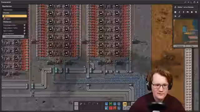 00:10:19Logo benötigt noch etwas Zeit, was die Gelegenheit bietet, die Fabrik weiter zu optimieren. Der erste Teil der Fabrik ist nun online und es wird überlegt, was die Fabrik alles produzieren soll. Der Titel des Streams wird zu 'Faktorio: Create mit Logo' geändert. Die Fabrik läuft an und das Zählsystem sowie die Züge funktionieren. Die gebaute Ofenmeile kompensiert das Eisen und stellt Eisen sowie Stahlträger mit maximaler Geschwindigkeit her, was die Anlage sehr effizient macht. Bei Eisenüberschuss werden Stahlträger produziert. Als nächstes sollte eine Chemiefabrik gebaut werden, wobei noch unklar ist, wie vorgegangen werden soll. Es wird mehr Fläche benötigt und die Pflanzen werden entfernt. Die Bots kümmern sich um den Bau. Es wird überlegt, welche Basic-Sachen zuerst hergestellt werden sollen, wie z.B. elektronische Schaltkreise. Es wird auf Logo gewartet, um nachher Create zu spielen. Die Map wurde erweitert und es gibt ein großes Zugnetz.