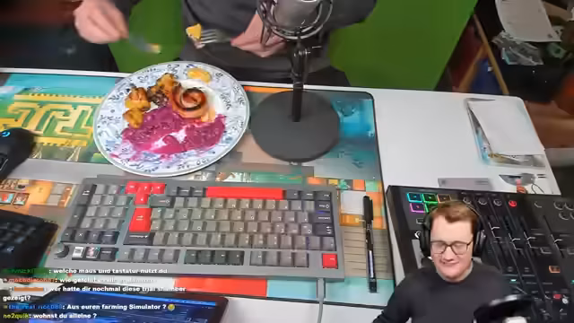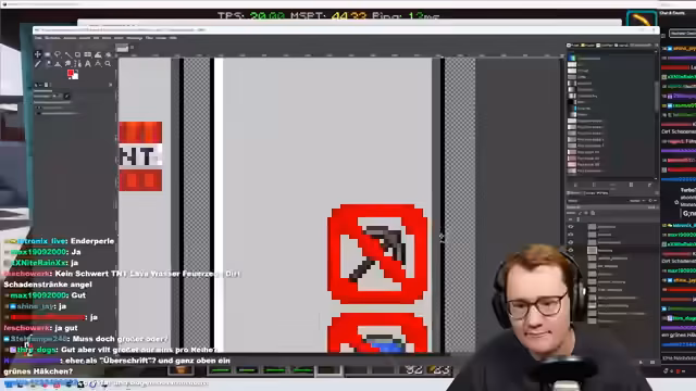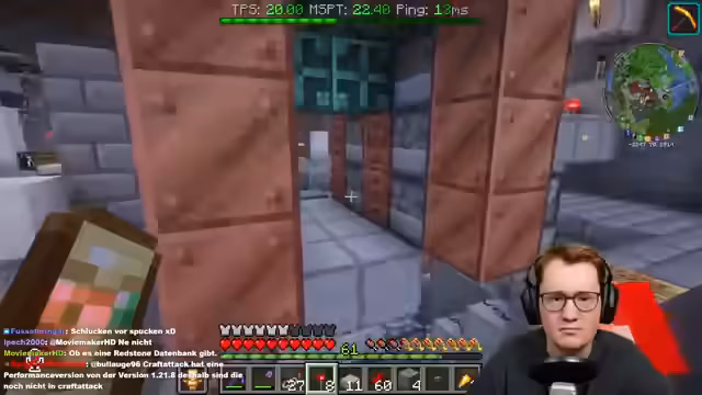 02:44:44Es wird überlegt, an den Rändern der Tür andere Blöcke als Öfen zu verwenden, um das Design zu optimieren. Eine Essenspause wird eingelegt, um sich zu stärken. Während der Pause werden persönliche Vorlieben für regionale und qualitativ hochwertige Lebensmittel wie Ringbratwurst von einer privaten Metzgerei betont. Es wird auch auf technische Details des Livestreams eingegangen, wie die beeindruckend niedrige Verlustrate von 0,0% bei gesendeten Frames. Zudem wird das Merch-Mousepad beworben und über die Funktion eines Mischpults für die Audiosteuerung des Streams gesprochen. Die Essenspause dient auch dazu, über die Integration eines Sensors nachzudenken, der nur auf den Streamer reagiert.