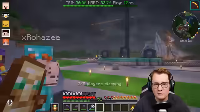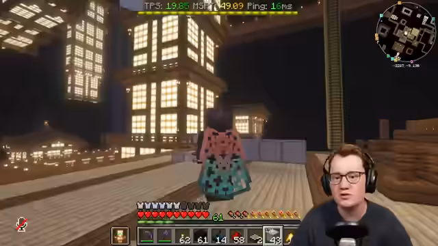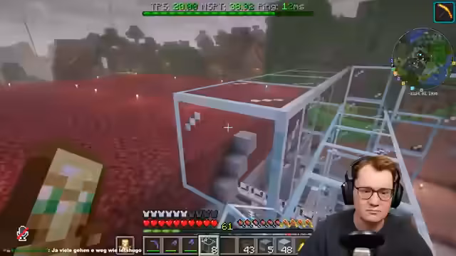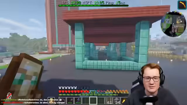 01:21:37Die Fertigstellung des Teleporters zum Spawn wird in Angriff genommen, obwohl nicht viele Enderperlen vorhanden sind. Es wird erwähnt, dass die Kelb-Farm später an die Kaktusfarm angeschlossen werden kann. Der Teleporter zum Shopping District wird für Pumi freigegeben, wobei ein Problem mit verschwindenden Items aus Droppern auf dem Server besteht. Es wird überlegt, Basti.GRG, der weit entfernt wohnt, ebenfalls einen Shortcut zum Shopping District anzubieten, möglicherweise gegen eine Gebühr in Dias. Die Schwierigkeit, mit Villagern zu handeln, um Enderperlen zu bekommen, wird thematisiert, da der Händler nicht genügend Enderperlen anbietet und gelevelt werden muss.