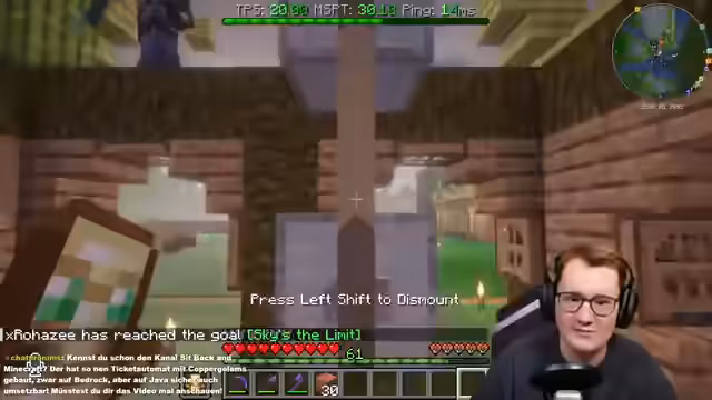 04:30:32Der Streamer zeigt ein komplexes Rätsel, bei dem eine Tür nur durch eine spezielle Technik mit Loom-Aliens geöffnet werden kann. Diese Aliens sind an einen Spieler gebunden und werfen ihm bei Annäherung ein Item zu, was einen Mechanismus auslöst, um die Tür zu öffnen. Zusätzlich demonstriert der Streamer eine gecappte XP-Farm, die in den Öfen konstant Level speichert, um schnell Werkzeuge reparieren zu können. Er erklärt auch den Einsatz von Allays als Arbeiter, um Items zu sammeln und zu transportieren.