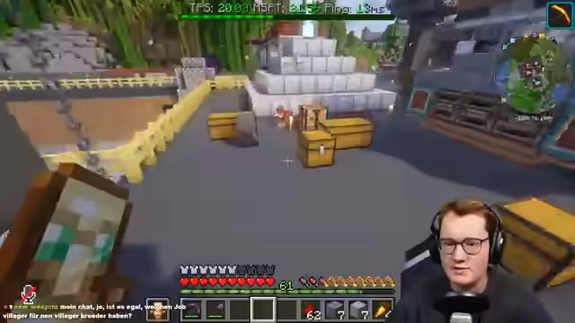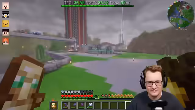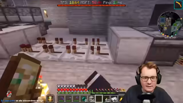 06:33:32Um die Wassershow am Eingang des Freizeitparks ununterbrochen laufen zu lassen, wird ein komplexer Chunkloader benötigt. Der Streamer baut eine Redstone-Anlage, die durch den permanenten Transport von Items zwischen der Oberwelt und der Hölle dafür sorgt, dass der gesamte Eingangsbereich geladen bleibt. Dadurch werden Lade-Probleme und Abstürze der Animation vermieden, sobald sich Spieler im Bereich befinden.