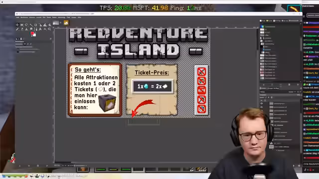 05:17:27Das Bezahlsystem für den Freizeitpark wird detailliert ausgearbeitet. Es wird festgelegt, dass ein Diamant zwei Tickets entspricht. Die Erklärung, wie Attraktionen genutzt werden und dass manche Fahrgeschäfte ein bis zwei Tickets kosten, wird auf einem Schild am Eingang platziert. Dabei wird das Design des Schildes mehrfach überarbeitet, um eine optimale Verständlichkeit zu gewährleisten. Ursprüngliche Ideen, wie die Verwendung eines Buches zur Erklärung, werden verworfen zugunsten eines direkteren Ansatzes auf einem UI-Element. Die Schriftgröße und -farbe werden angepasst, um die Lesbarkeit zu verbessern, und es wird überlegt, wie man den Einwurf für die Tickets am besten visuell darstellt, eventuell mit unsichtbaren Item-Frames und Karten.