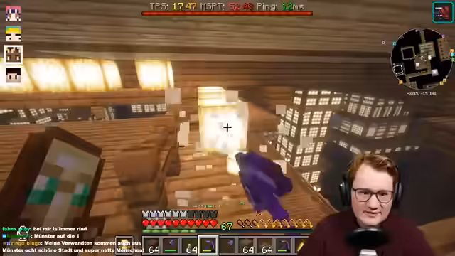 01:52:04Der Streamer erklärt seine häufigen Abwesenheiten mit organisatorischen Aufgaben und Büroarbeit, die er normalerweise offline erledigen würde, aber heute live streamt, um mehr Sendezeit zu bieten. Er beantwortet Fragen zu den Anforderungen für die Teilnahme an Craft Attack, die entweder eine sehr große Reichweite oder eine Nominierung durch einen Teilnehmer und ein anschließendes Voting erfordern. Er selbst wurde von Spark vorgeschlagen und kannte das Projekt vorher nicht. Anschließend plant er die Musik für das Infinity Castle mit Eli. Er hat eine bestehende Minecraft-Musik-Variante eines YouTubers gefunden, die er als Basis nutzen und erweitern möchte, um Zeit bei der Komposition und dem Arrangement zu sparen. Die korrekte Quellenangabe ist ihm dabei wichtig. Er beginnt mit der Vorbereitung der Trading Hall und überlegt, wo der beste Zugang und die optimale Höhe für das Gebäude sind, während er sich über störende Kisten ärgert.