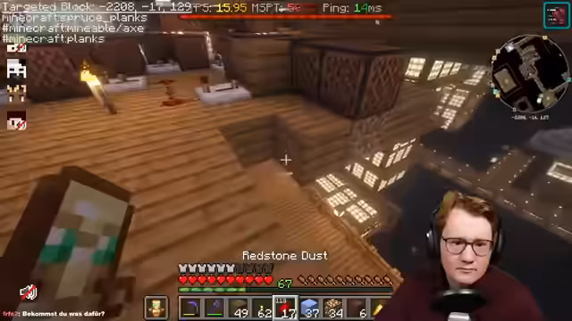 05:55:44Der Streamer und seine Community diskutieren über die Effizienz von KI-Tools wie ChatGPT, wobei der Streamer die Beobachtung teilt, dass ChatGPT in den letzten sechs Monaten an Leistungsfähigkeit verloren zu haben scheint, insbesondere bei der Bildgenerierung, die nun mehrfache Bestätigungen erfordert. Er überlegt sogar, einen eigenen KI-Assistenten auf Linux-Basis einzurichten, um Legasthenie-Aufgaben zu unterstützen. Im Spiel wird währenddessen an einer komplexen Redstone-Schaltung gearbeitet, um Items wie Kuchen für die Stromstärke 14 zu nutzen und die Kisten halbvoll zu halten. Es wird eine Glocke implementiert, die doppelte Trichterspeed erreichen soll, um die Effizienz der Item-Verteilung zu maximieren. Die Crafter müssen korrekt eingestellt werden, um Probleme zu vermeiden, und die Bambusfarm wird aktiviert, um eine kontinuierliche Versorgung sicherzustellen. Die Verteilung der Items in den Trichtern wird genau beobachtet, um eine gleichmäßige Befüllung zu gewährleisten, und Anpassungen an der Redstone-Schaltung werden vorgenommen, um die optimale Geschwindigkeit zu erreichen und einen reibungslosen Ablauf der Farm zu ermöglichen.