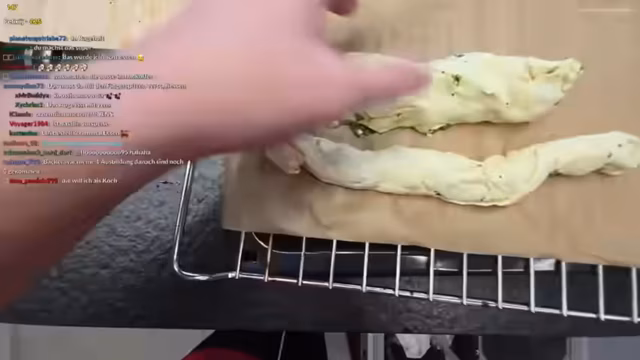 01:50:55Nachdem der Streamer den Spinat, Knoblauch und den Käse vorbereitet hat, brät er die Mischung kurz an und mischt schließlich den geriebenen Schafskäse und die Pinienkerne unter. Nach würzen der Füllung beginnt er mit der Formgebung der Blätterteigröllchen. Er versucht verschiedene Techniken, von einfachem Rollen bis zu doppelten Klapp- und Verschlussmethoden. Er stellt fest, dass dies die anspruchsvollste Aufgabe im griechischen Kochen ist und zeigt seine ersten, unterschiedlich geformten und dimensionierten Röllchen dem Chat.