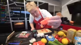 01:23:35Der Streamer beginnt mit der Vorbereitung für seinen griechischen Kochstream. Nach einer allgemeinen Begrüßung und der Erklärung, dass seine Frau griechischer Abstammung ist, stellt er seine Küchenutensilien und Zutaten wie Rinderhack, Pinienkerne und Blätterteig vor. Er beginnt mit der ersten Vorbereitungsschritte für sein erstes Gericht, Spinatschafskäse-Blätterteigröllchen, und lässt sich vom Chat bei der genauen Temperatur und Anleitung für den Ofen helfen, wobei seine Frau als Kamerafung agiert.