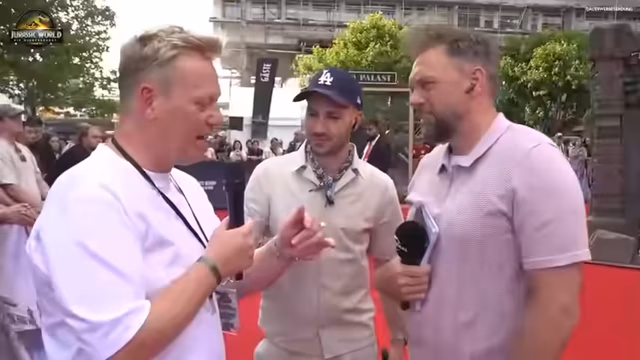 04:01:34Der Streamer wechselt zu Jonathan Bailey und beginnt ebenfalls ein Interview. Er wirkt unsicher bei der Begrüßung und überlegt, wie er sich vorstellen soll – ob als Jens oder als 'Knossi'. Er stellt dem Schauspieler Fragen über seine Rolle im Film und das Filmdreh, der unter anderem in Thailand und Malta stattfand. Bailey beschreibt das Gefühl, Teil des Jurassic-Franchises zu sein, als 'unfassbar' und 'traumhaft', und erinnert sich an seine persönliche Geschichte mit den Filmen seit seiner Kindheit.