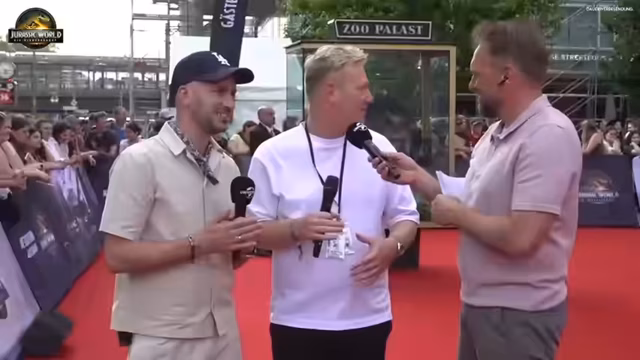 01:18:35Der Streamer drückt seine große Vorfreude auf den neuen Film aus. Er ist seit seiner Kindheit ein Fan der Jurassic-Franchise und bezeichnet es als besondere Ehre, bei der Premiere dabei zu sein. Die Atmosphäre, das aufwändige Set und das Logo allein machen den Abend für ihn zu einem unvergesslichen Erlebnis. Er möchte, dass die Zuschauer diese Spannung und den Glanz der Veranstaltung live miterleben.