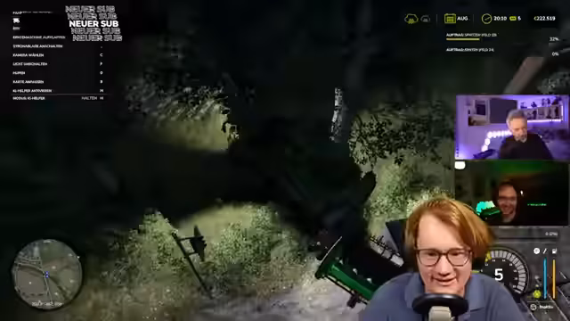00:04:07Es wird der Farming Simulator 2025 zusammen mit RGBpixl und DebitorLP gespielt. Der Streamer zeigt sich begeistert von dem neuen Stream Together Feature von Twitch, welches es ermöglicht, die Kamerabilder von Gästen wie RGB und DebitorLP einfach in OBS einzubinden. Das Feature wird als mega underrated und sehr praktisch beschrieben, da es erlaubt, mehrere Leute mit Kamerabild in den Stream zu integrieren. Es wird kurz die Aktivierung der Kamera und die Einbindung des Kamerabilds demonstriert, wobei die geringe Verzögerung positiv hervorgehoben wird. Es wird erwähnt, dass durch die Anmeldung von RGB und DebitorLP diese ebenfalls im Stream sichtbar sein könnten. Der Plan ist, das Feature im heutigen Farming Simulator Stream auszuprobieren, um die verschiedenen Perspektiven der drei Spieler darzustellen. Der Streamer äußert den Wunsch, dass der Chat bei der Einrichtung des Spiels behilflich ist, da keinerlei Erfahrung mit Landwirtschaftssimulatoren besteht.