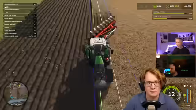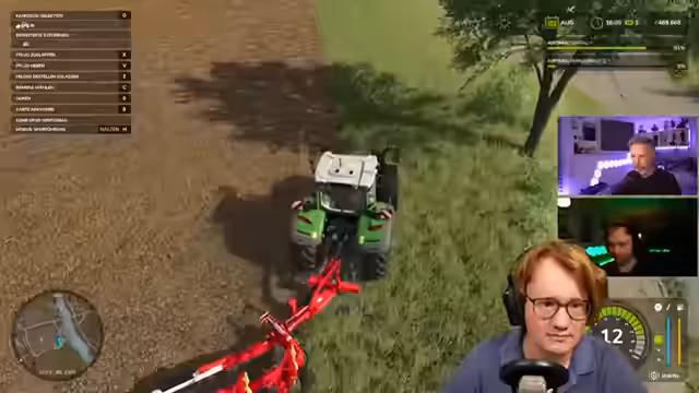 02:07:53Es gibt anfängliche Schwierigkeiten mit der Spurführung des Traktors, besonders am Feldrand. Das System schmeißt den Spieler immer wieder raus, was vermutlich an der Nähe zum Rand liegt. Nach einigen Versuchen wird festgestellt, dass die manuelle Steuerung am Rand notwendig ist. Anschließend gelingt es, die automatische Spurführung zu aktivieren, nachdem herausgefunden wurde, dass das Feld von der richtigen Seite aus befahren werden muss. Der Streamer entdeckt, wie man den Flug bedient, was zu humorvollen Kommentaren führt. Es wird erwähnt, dass die Settis-Map im Video von Joe Debi verlinkt ist. Die Aufträge im Spiel werden als praktisch zum Kennenlernen des Spiels gelobt. Ein Zuschauerbeitrag thematisiert Landwirte, die große Flächen mit kleineren Sähmaschinen bearbeiten, was zu Spekulationen über die Gründe dafür führt. Der Streamer findet einen Baum und erzählt eine Anekdote über einen Kollegen, der lieber einen langen Arbeitsweg in Kauf nimmt, um seine Ruhe zu haben.