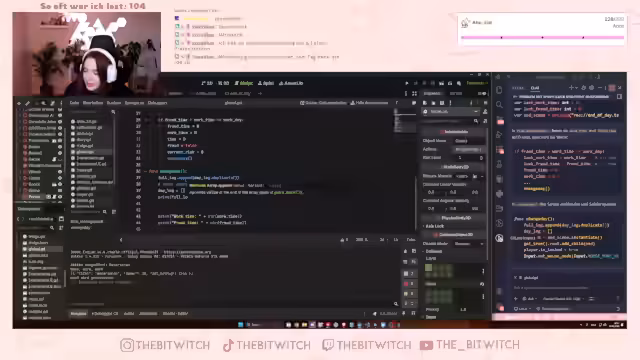 01:28:56Der Streamer arbeitet an einem Zeitmanagement-System, bei dem er Probleme mit der Speicherung von Werten hat, insbesondere bei der Übertragung von Daten zwischen verschiedenen Szenen. Er versucht, eine Funktion zu implementieren, die die letzte Arbeitszeit und Betrugszeit korrekt speichert und anzeigt. Dabei wird er durch technische Herausforderungen und Verwirrung bei der Verwendung von Godot abgelenkt. Der Streamer ist ungeduldig und sucht nach Lösungen, um die Zeit korrekt zu verwalten und anzuzeigen.