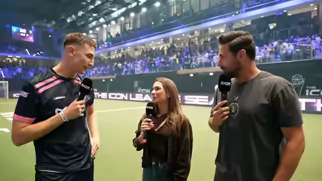 00:30:02OneFootball dominiert das Spiel gegen B2B und geht in Führung. Die taktische Ausrichtung, insbesondere das aggressive Vorstoßen der Torhüter, wird thematisiert. Nach mehreren Toren für OneFootball wird der erste "Rule Breaker" der Saison ausgelöst, wodurch ein Tor doppelt gezählt wird. Obwohl B2B einen Gegenstoß wagt, bleibt OneFootball klar im Vorteil. Die Torschützen Sindic und Wurm werden als mögliche MVPs gehandelt. Das Spiel endet mit einem deutlichen Ergebnis von 9:3.